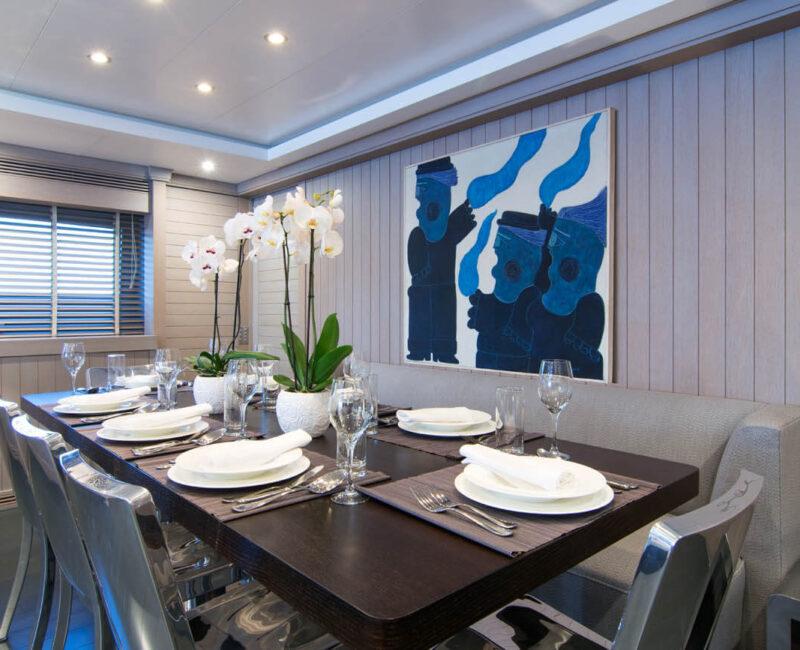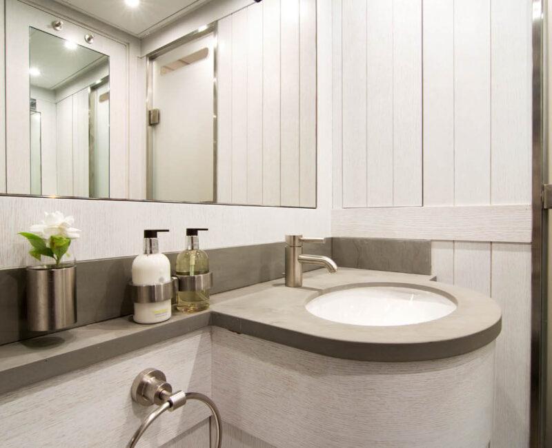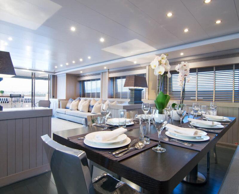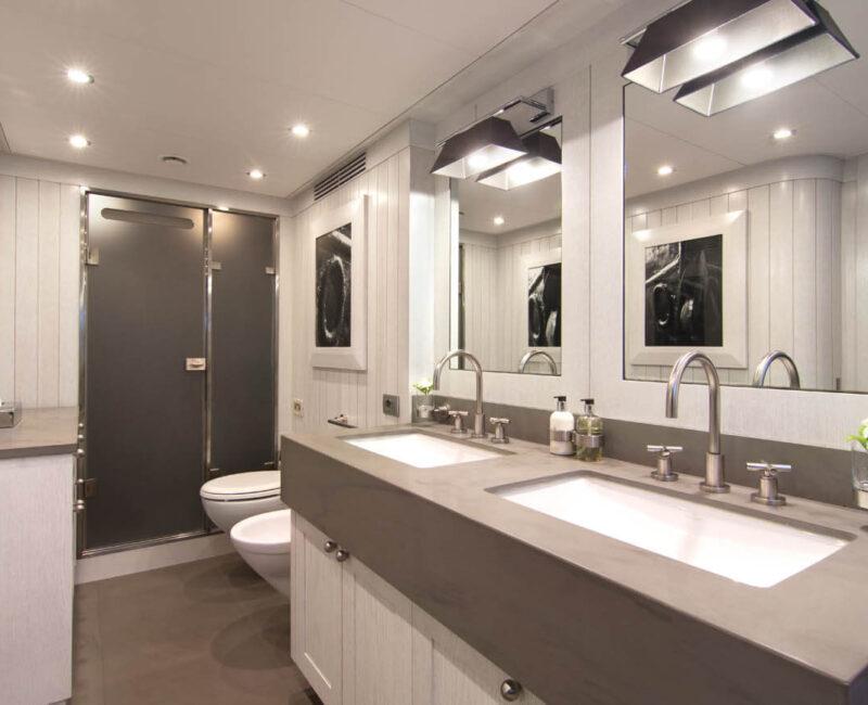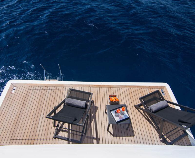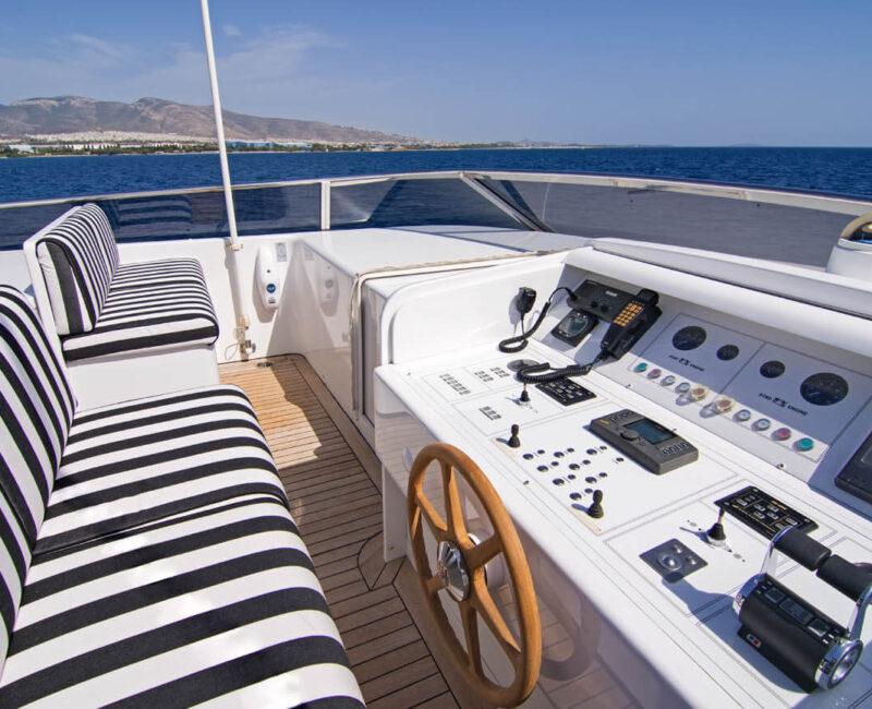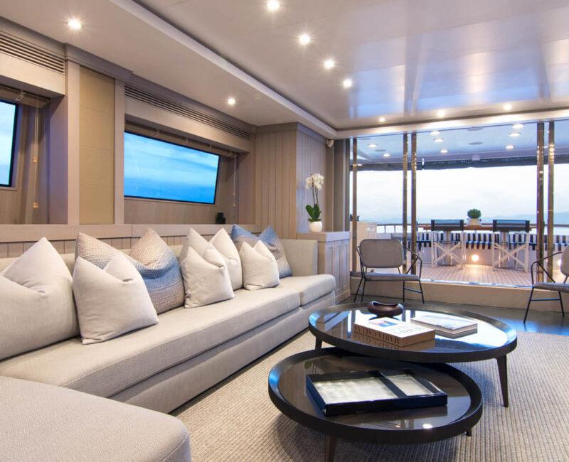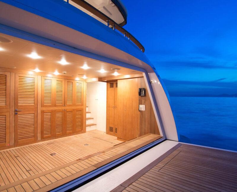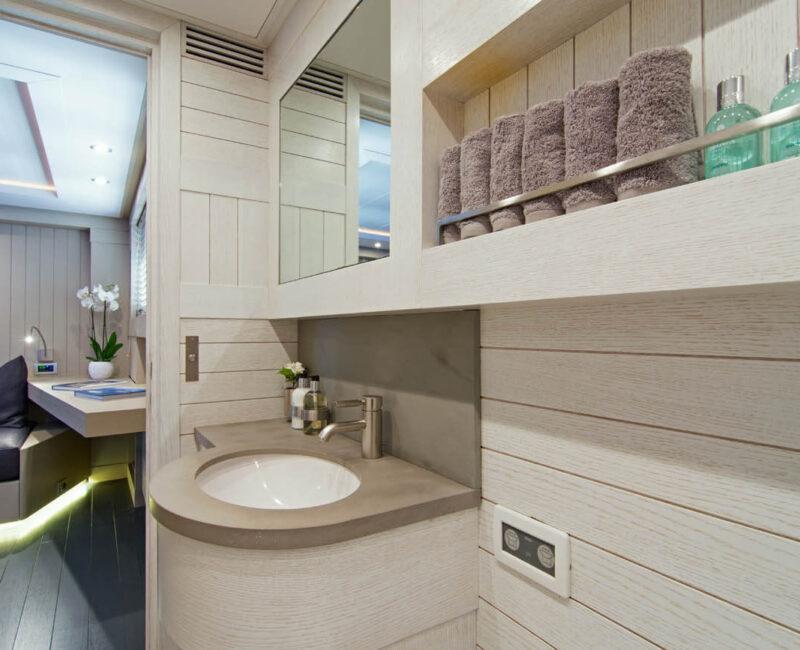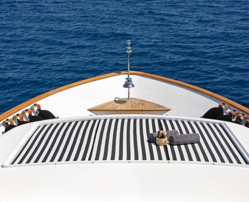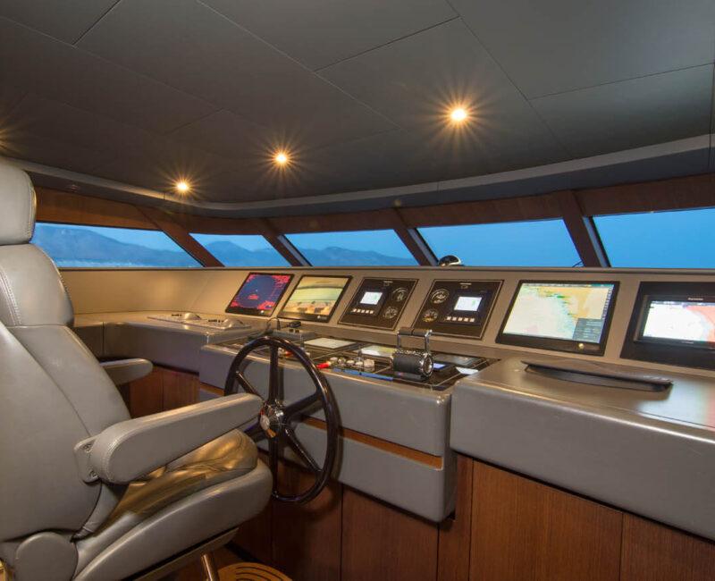Deck Facilities / EquipmentSat TV in all cabins/Salon/Sundeck/Office, Home cinema in salon, DVD/CD Player in salon and office, HD TV on the Sundeck, Apple AirPlay