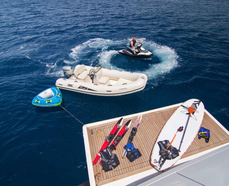 Tenders & Toys4,3m tender with 40hp Honda outboard engine , Spark wave-runner sea-doo two-seater , Seabob , Stand up paddle board , Inflatabla Sofa ,Tube • Water-skis , Fishing equipment