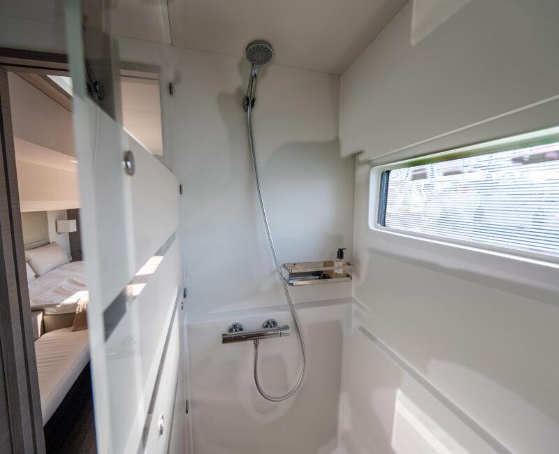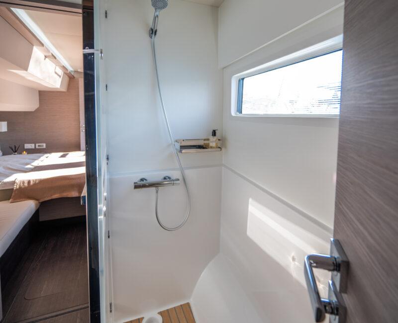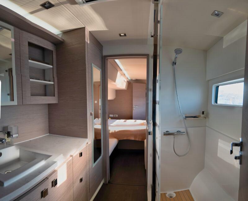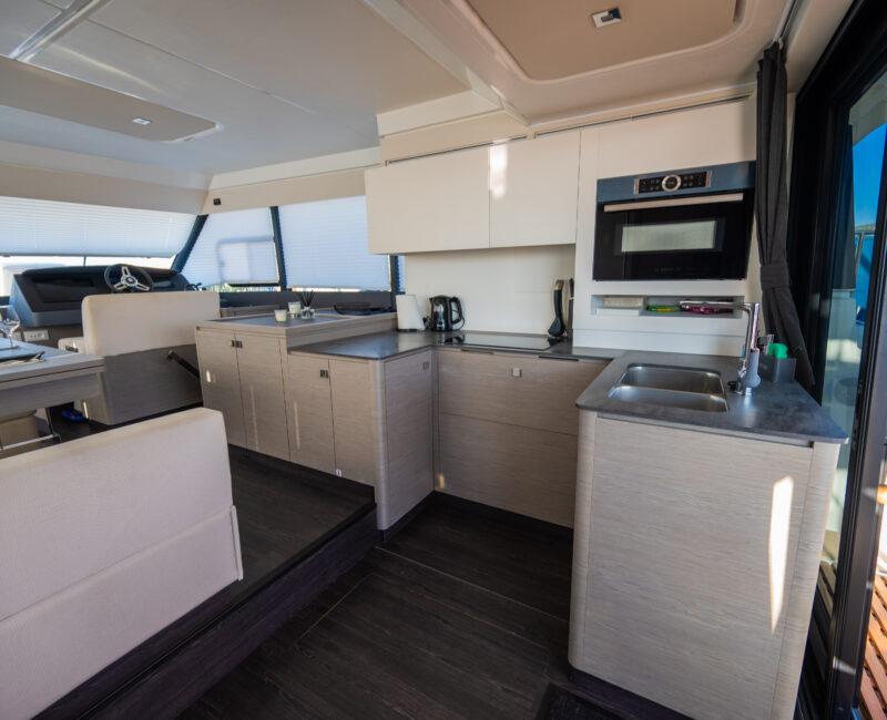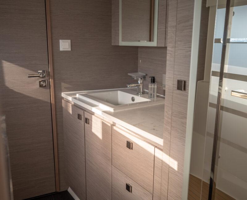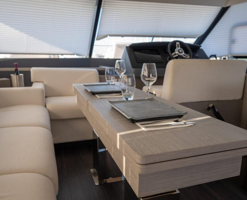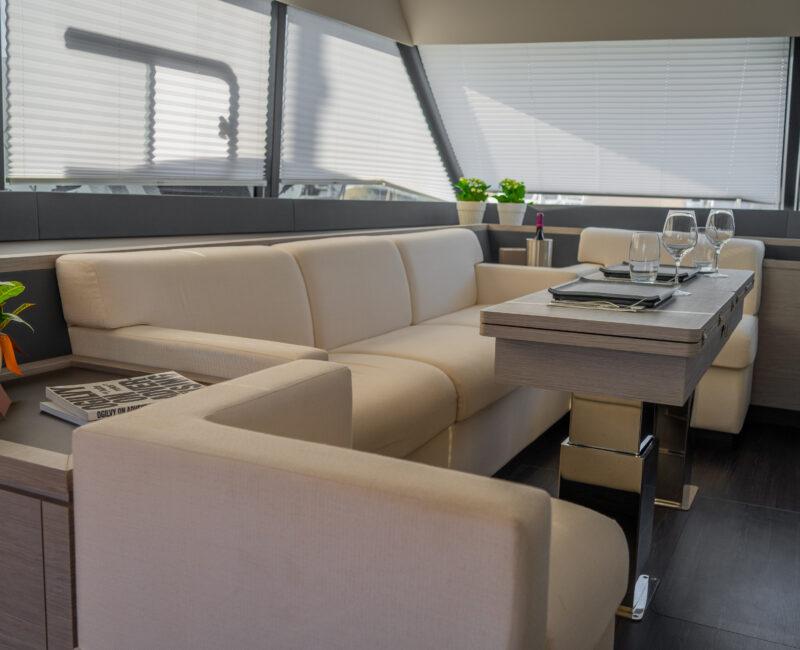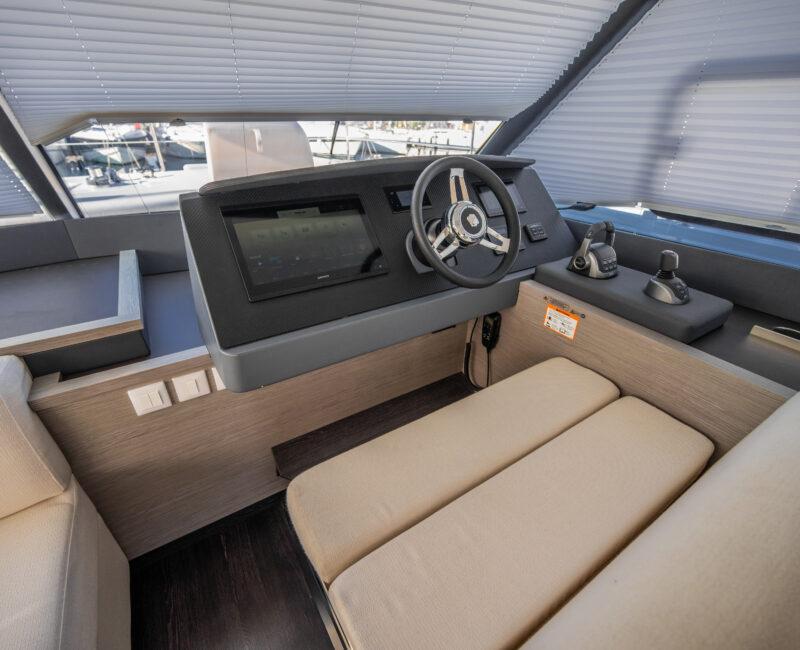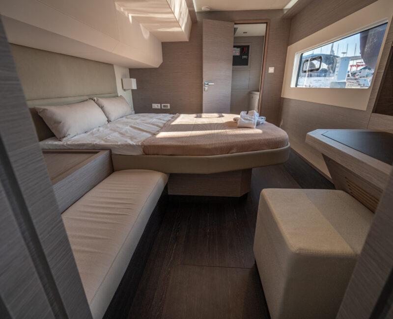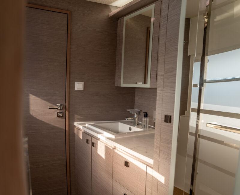 HighlightsA Luxury Power Catamaran with a spacious Flybridge with dining space up to 6 guests. Expansive Cockpit & Foredeck Lounge with a panoramic saloon offering a 360° view. Premium Accommodations and efficient Performance – Powered by twin Volvo IPS 600 engines, cruising at 18-24 knots. Perfect for long range cruises. It Feattures a very spacious layout and a hydraulic swim platform